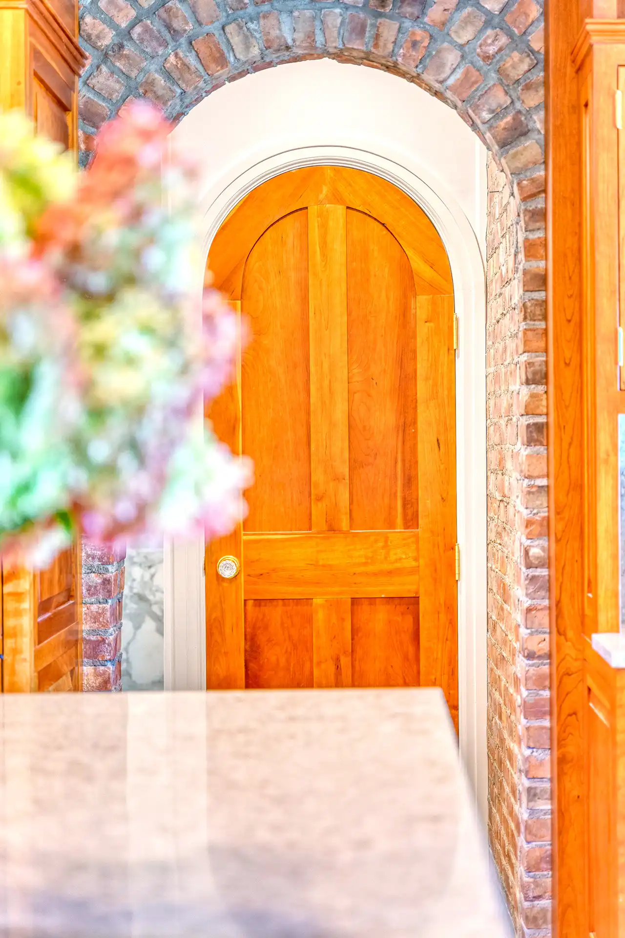 This Regency brick estate in the Upper Hudson Valley was thoughtfully expanded to honor its historic character while meeting the needs of a modern family. One wing was carefully restored to match a new addition on the opposite side, preserving the home’s classical proportions and graceful symmetry. Regional artisans crafted details throughout, from a flagstone patio and cherry woodwork to restored spiral staircase treads, seamlessly uniting period craftsmanship with contemporary living.